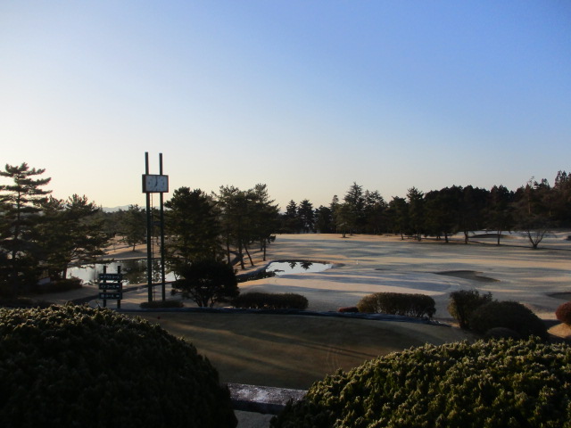 今朝は、-3℃と寒い朝でしたが、日中は10℃近くまで温度が上がります。冬のプレーをお楽しみ下さい。